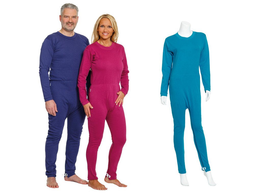 Delený zips na nohaviciach vedie pozdĺž vnútornej strany nohavíc obleku, čo umožňuje rýchle umytie pacienta a rýchlu a jednoduchú výmenu inkontinenčného materiálu alebo kompresívnej bielizne bez toho, aby sa pacient musel úplne vyzliecť. Aby sa zabránilo rozopnutiu zipsu, na manžetách členkov sú patentky, ktoré zároveň fixujú posuvnú platničku zipsu.