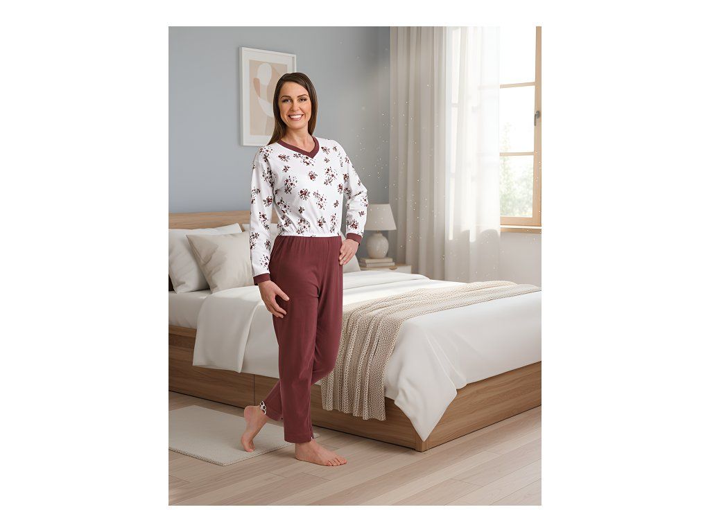 Pyžamový overal pre dlhodobo choré ženy vínový